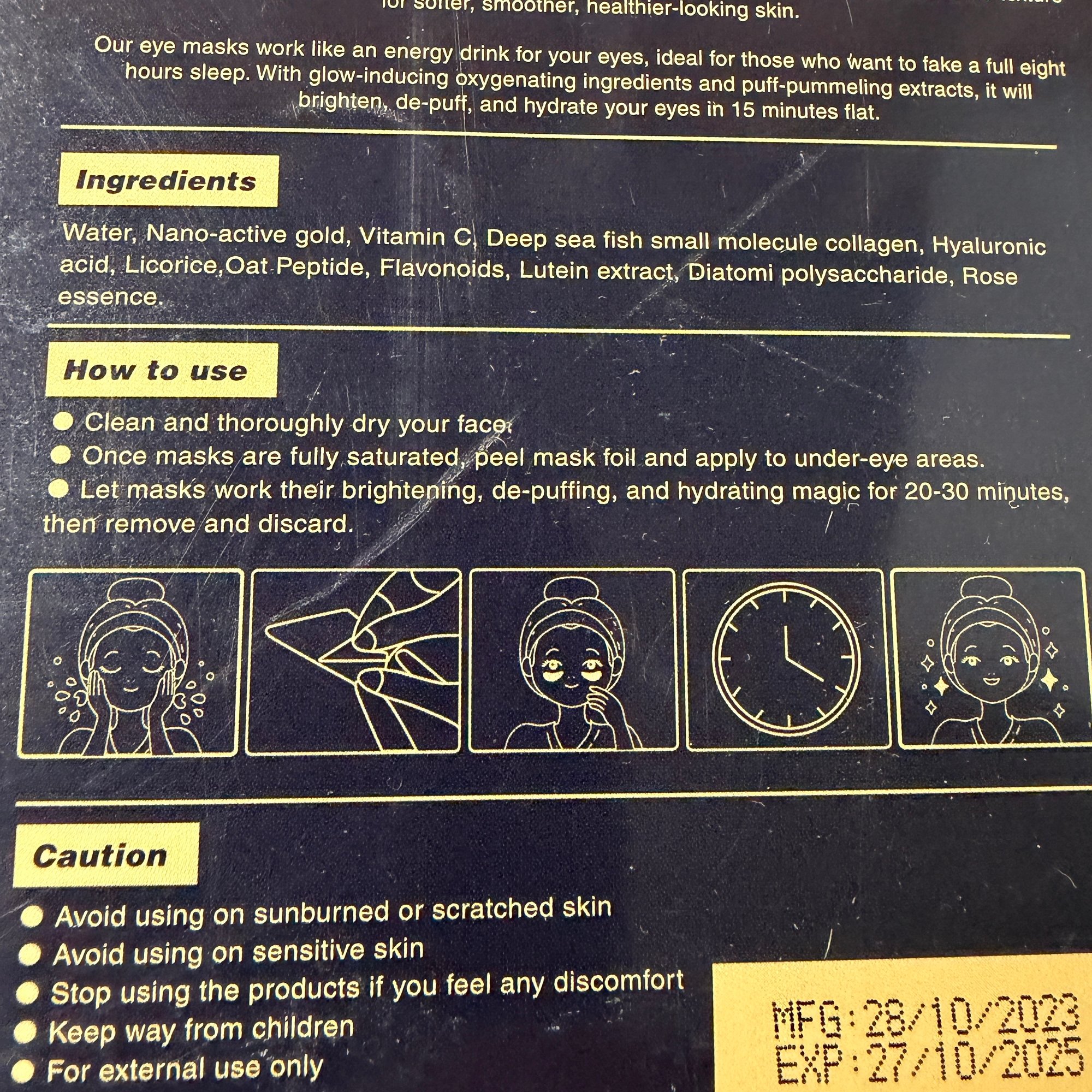Golden Eye Mask 4 Boxes 48 total Patches FREE Shipping. 48 Pairs Of Golden Eye Masks, Collagen Skin Care Products, Glycerin And Moisturizing Ingredients, Protect The Skin's Moisture Barrier And Look Refreshed, Eye Patches, Suitable for Wedding Party Gifts, Valentine's Day Gifts, Must-have. Exp 10/27/2025